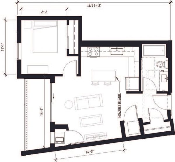The queen-sized bedroom easily accommodates a queen bed, two nightstands, and a chest of drawers, while offering a spacious walk-in closet and an additional closet in the entry for excellent storage. The bathroom includes a tub/shower combo and a generous full-sized vanity. The open kitchen comes equipped with a complete stainless steel appliance package — full-sized refrigerator, electric stove, microwave, dishwasher, and garbage disposal. A private balcony off the living room provides your own outdoor space to enjoy fresh air and views.